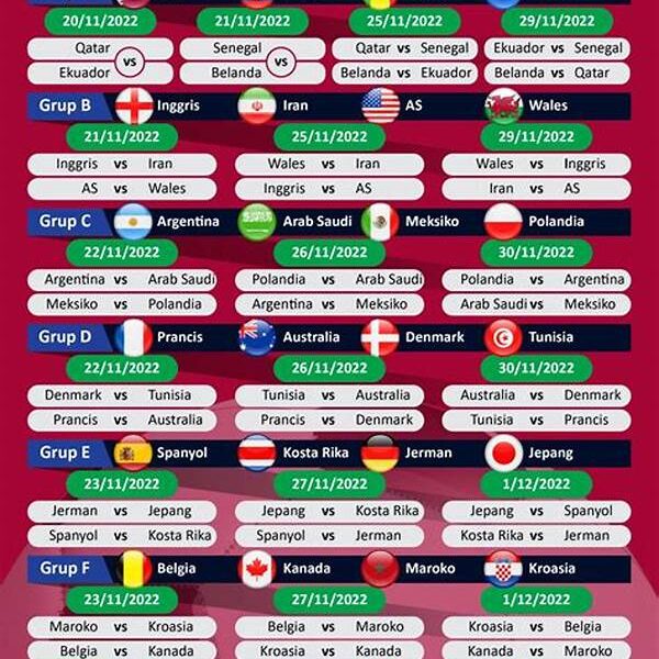 Setiap perhelatan Piala Dunia adalah momen yang paling dinanti oleh penggemar sepak bola di seluruh dunia. Kehebohan dan kemeriahan yang menyelimuti ajang bergengsi ini mampu membuat siapa saja, bahkan yang bukan penggemar fanatik, ikut terpikat dalam euforia yang sama. Tak heran bila jadwal bola Piala Dunia menjadi salah satu informasi yang paling dicari dan ditunggu. Penantian panjang ini bukan semata-mata tentang pertandingan, tetapi juga tentang kebanggaan, persatuan, dan nostalgia. Kita berbicara mengenai malam-malam panjang di depan televisi, momen tegang di warung kopi, dan sorak-sorai yang menggema hingga dini hari.
